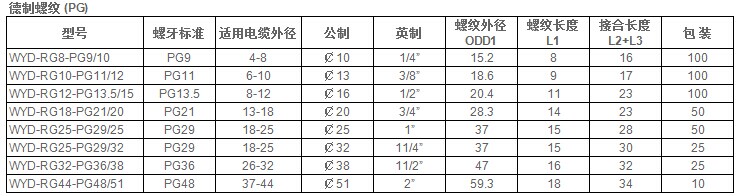螺牙規(guī)格:公制牙(Metric/EN50262)、PG牙、G(PF)牙以及美制牙(NPT),各種規(guī)格可接受訂做
